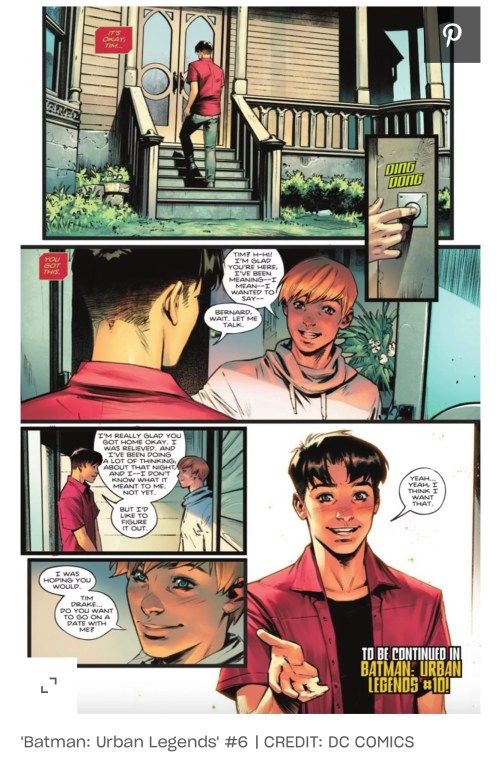 During the rescue mission, featured in this week’s Urban Legends #6, Bernard mentions to Robin that he wishes he could’ve finished his date with Tim, unaware that he’s actually speaking to his love interest. A few pages later, Tim goes to see Bernard and things are clarified.