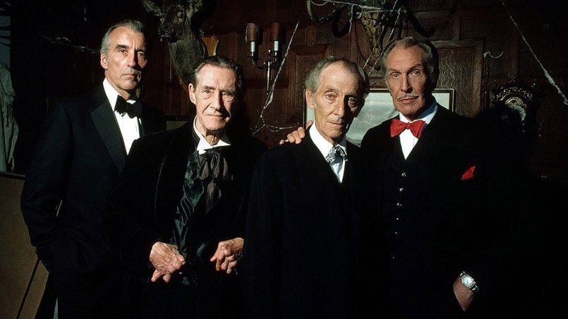 Young Writer Kenneth Magee (Desi Arnaz, Jr.) makes a $20,000.00 bet with his publisher that he can write a similar tale to Wuthering Heights in 24 hours. To provide this atmosphere and complete privacy, Magee heads out to a deserted manor house that his publisher arranges for him to write his manuscript. The manor is not deserted as advertised as Lord Grisbane (David Carradine), his daughter (Shelia Keith), his sons Sebastian (Peter Cushing) and Lionel (Vincent Price) along with Magee’s publisher’s secretary Mary Norton (Julie Peasgood). If this wasn’t enough of a full house, they are greeted by a man named Corrigan (Christopher Lee) who is a potential buyer of the manor.