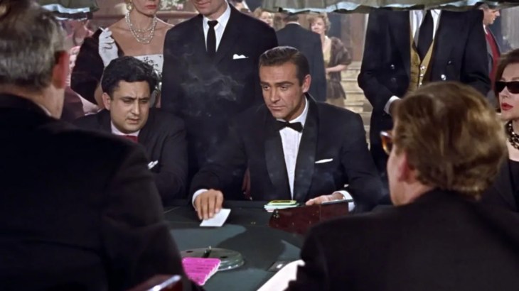 We might have saved the best for last here because the poker scene in Casino Royale is nothing short of legendary. During the scene, a game of Texas hold ’em is played – the characters were actually playing baccarat in the novel version of the same story.